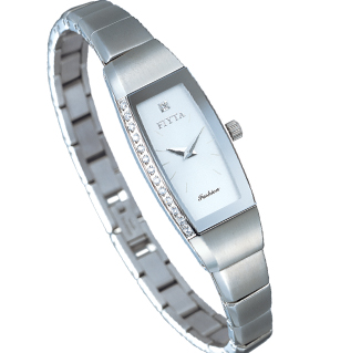 L539 整体造型采用不对称设计,造型介于手镯与手表之间,修长娟秀,简洁而韵味十足,让人怦然心动! 蓝宝石表镜 不锈钢镶钻表壳 不锈钢表带 进口石英机芯 防水深度30米 适合勇于创新的现代女性佩带,追求一种独特的、不对称的美