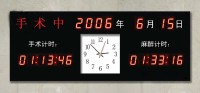 用于医院,显示年月日 ,星期,时分秒,温湿度,手术时间.走时精确,可红外线摇控校时,计算机设置校时,微型电脑控制